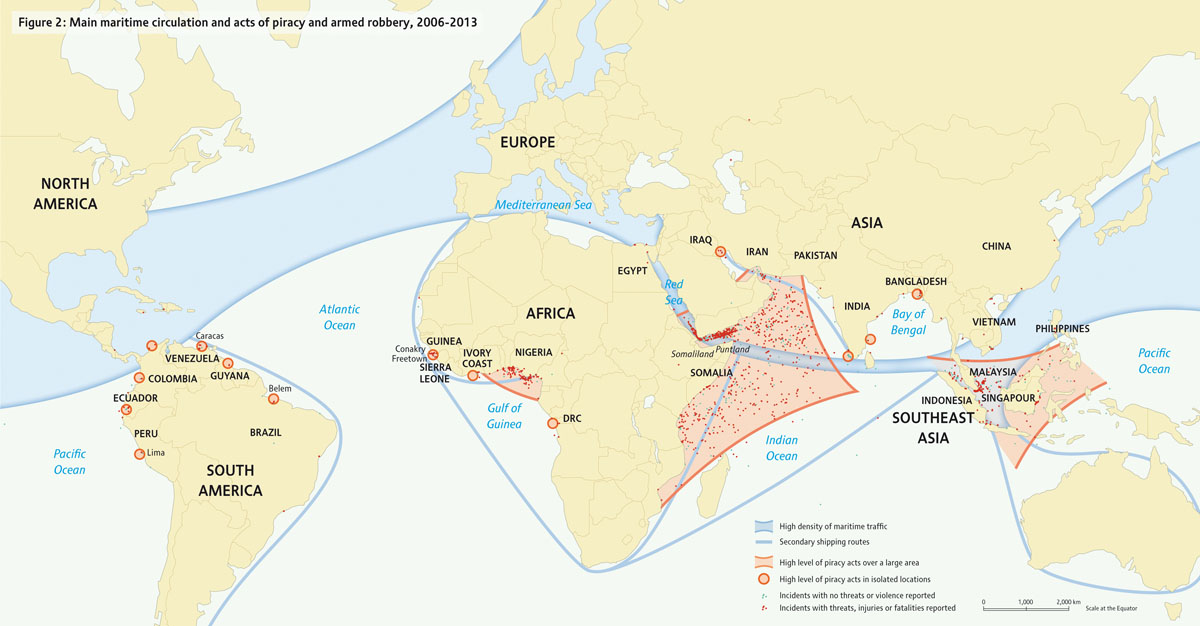The global report, building primarily on data maintained by the International Maritime Organization, explores how trends in geospatial patterns and severity of reported piracy incidents are developing from 1995 to 2013.